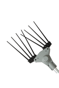 Come per gli altri modelli di scuotitori Volpi Originale, la testa di raccolta è inclinata per facilitare l'ingresso nelle piante e i due bracci porta-astine sono progettati per consentire una facile sostituzione dei rebbi.